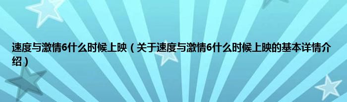 本文关于速度与激情6什么时候上映的基本详情介绍就讲解完毕,希望对大家有所帮助。