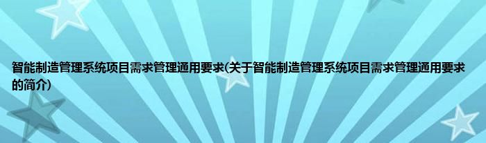 1、 《智能制造管理系统项目需求管理通用要求》是2020年5月13日实施的一项行业标准。