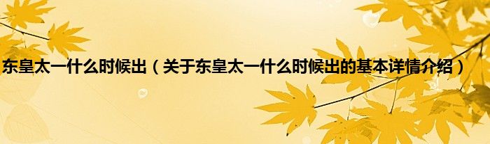 本文关于东皇太一什么时候出的基本详情介绍就讲解完毕,希望对大家有所帮助。
