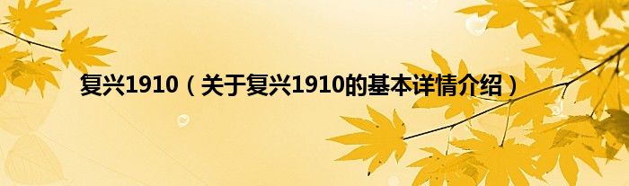 本文关于复兴1910的基本详情介绍就讲解完毕,希望对大家有所帮助。