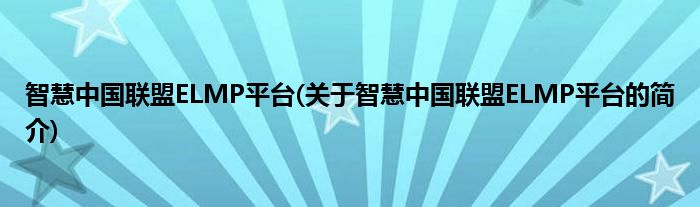 本文关于智慧中国联盟ELMP平台的简介就讲解完毕,希望对大家有所帮助。
