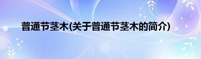 大家好,普通节茎木,关于普通节茎木的简介很多人还不知道,现在让我们一起来看看吧!