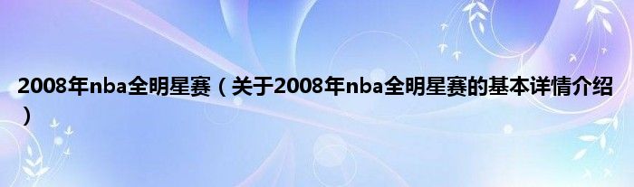 本文关于2008年nba全明星赛的基本详情介绍就讲解完毕,希望对大家有所帮助。