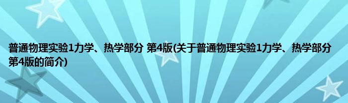 本文关于普通物理实验1力学、热学部分 第4版的简介就讲解完毕,希望对大家有所帮助。