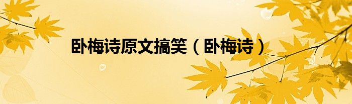 大家好,小问来为大家解答以上问题。卧梅诗原文搞笑,卧梅诗这个很多人还不知道,现在让我们一起来看看吧!