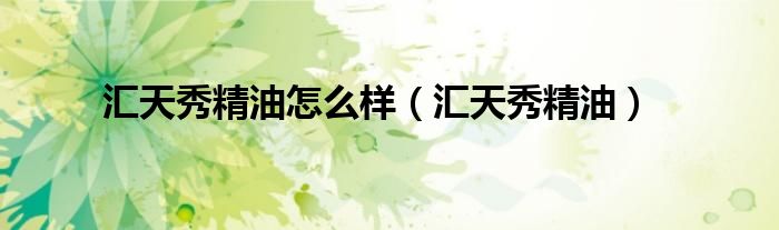 汇天秀精油怎么样(汇天秀精油)