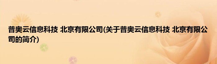 普奥云信息科技 北京有限公司(关于普奥云信息科技 北京有限公司的简介)