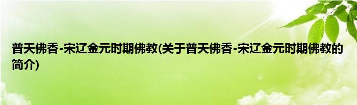 大家好,普天佛香-宋辽金元时期佛教,关于普天佛香-宋辽金元时期佛教的简介很多人还不知道,现在让我们一起来看看吧!