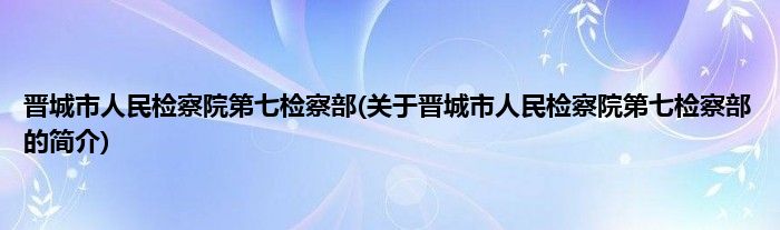大家好,晋城市人民检察院第七检察部,关于晋城市人民检察院第七检察部的简介很多人还不知道,现在让我们一起来看看吧!