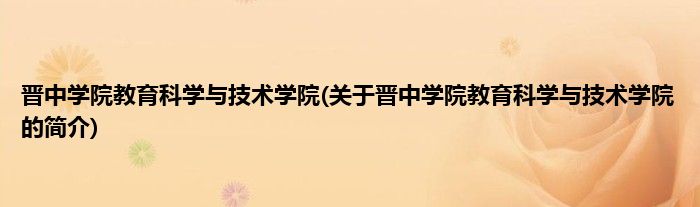 大家好,晋中学院教育科学与技术学院,关于晋中学院教育科学与技术学院的简介很多人还不知道,现在让我们一起来看看吧!