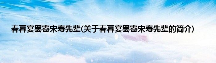 大家好,春暮宴罢寄宋寿先辈,关于春暮宴罢寄宋寿先辈的简介很多人还不知道,现在让我们一起来看看吧!