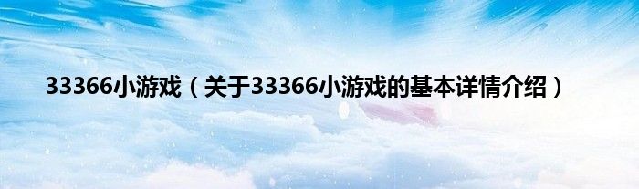本文关于33366小游戏的基本详情介绍就讲解完毕,希望对大家有所帮助。