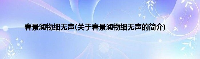 本文关于春景润物细无声的简介就讲解完毕,希望对大家有所帮助。