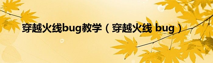 以上就是【穿越火线bug教学,穿越火线 bug】相关内容。