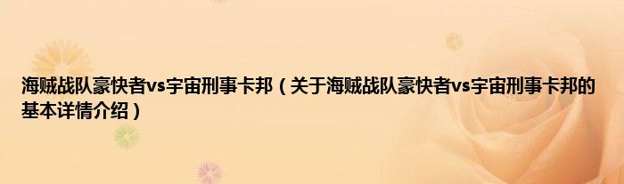 本文关于海贼战队豪快者vs宇宙刑事卡邦的基本详情介绍就讲解完毕,希望对大家有所帮助。