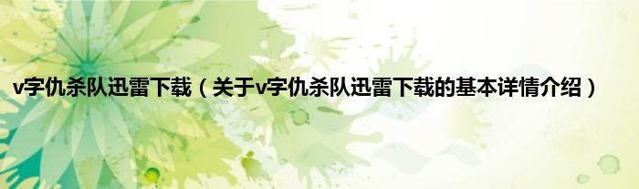 本文关于v字仇杀队迅雷下载的基本详情介绍就讲解完毕,希望对大家有所帮助。