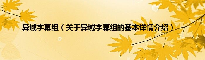 本文关于异域字幕组的基本详情介绍就讲解完毕,希望对大家有所帮助。