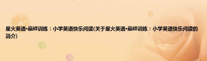 本文关于星火英语·巅峰训练:小学英语快乐阅读的简介就讲解完毕,希望对大家有所帮助。