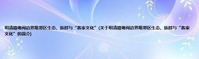 本文关于明清赣粤闽边界毗邻区生态、族群与“客家文化”的简介就讲解完毕,希望对大家有所帮助。