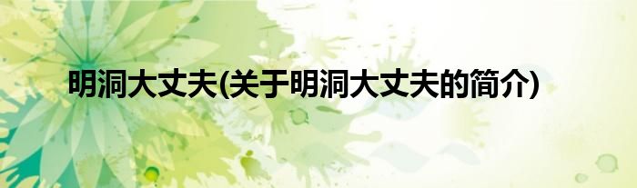 本文关于明洞大丈夫的简介就讲解完毕,希望对大家有所帮助。