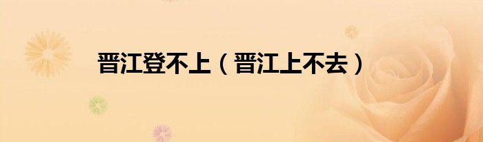 以上就是【晋江登不上,晋江上不去】相关内容。