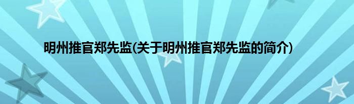 大家好,明州推官郑先监,关于明州推官郑先监的简介很多人还不知道,现在让我们一起来看看吧!