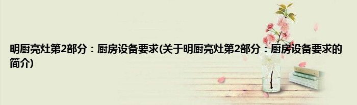 本文关于明厨亮灶第2部分:厨房设备要求的简介就讲解完毕,希望对大家有所帮助。