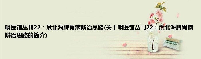 本文关于明医馆丛刊22:危北海脾胃病辨治思路的简介就讲解完毕,希望对大家有所帮助。
