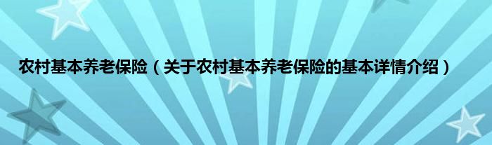 本文关于农村基本养老保险的基本详情介绍就讲解完毕,希望对大家有所帮助。