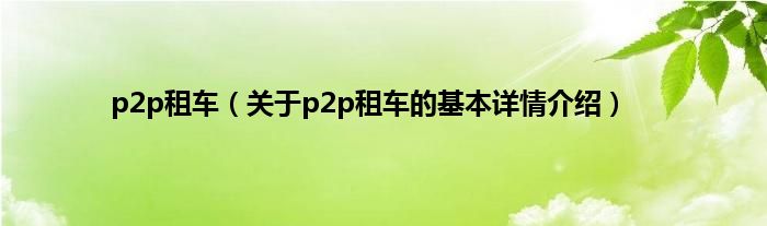 本文关于p2p租车的基本详情介绍就讲解完毕,希望对大家有所帮助。
