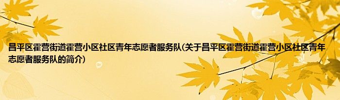 昌平区霍营街道霍营小区社区青年志愿者服务队(关于昌平区霍营街道霍营小区社区青年志愿者服务队的简介)