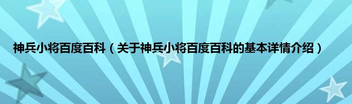 本文关于神兵小将百度百科的基本详情介绍就讲解完毕,希望对大家有所帮助。