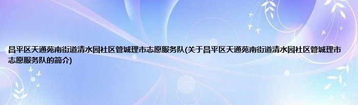 本文关于昌平区天通苑南街道清水园社区管城理市志愿服务队的简介就讲解完毕,希望对大家有所帮助。