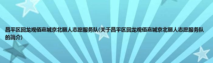 昌平区回龙观佰嘉城京北丽人志愿服务队(关于昌平区回龙观佰嘉城京北丽人志愿服务队的简介)