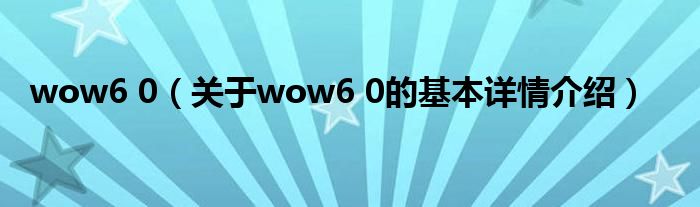 本文关于wow6 0的基本详情介绍就讲解完毕,希望对大家有所帮助。