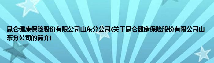 本文关于昆仑健康保险股份有限公司山东分公司的简介就讲解完毕,希望对大家有所帮助。
