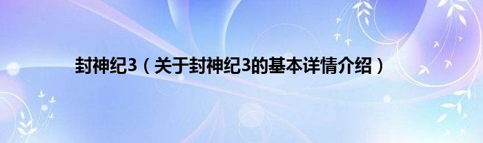 本文关于封神纪3的基本详情介绍就讲解完毕,希望对大家有所帮助。