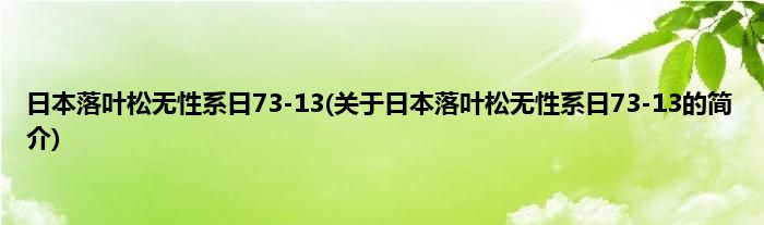 1、 日本落叶松无性系日73-13是松科、落叶松属植物。