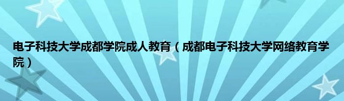 大家好,小问来为大家解答以上问题。电子科技大学成都学院成人教育,成都电子科技大学网络教育学院这个很多人还不知道,现在让我们一起来看看吧!