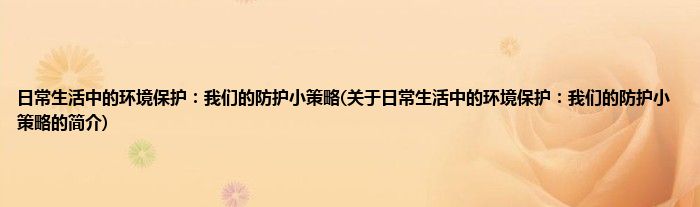 日常生活中的环境保护:我们的防护小策略(关于日常生活中的环境保护:我们的防护小策略的简介)