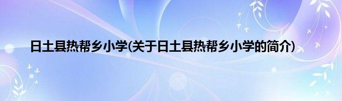 本文关于日土县热帮乡小学的简介就讲解完毕,希望对大家有所帮助。
