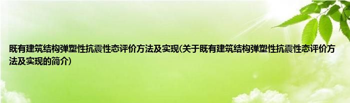 本文关于既有建筑结构弹塑性抗震性态评价方法及实现的简介就讲解完毕,希望对大家有所帮助。