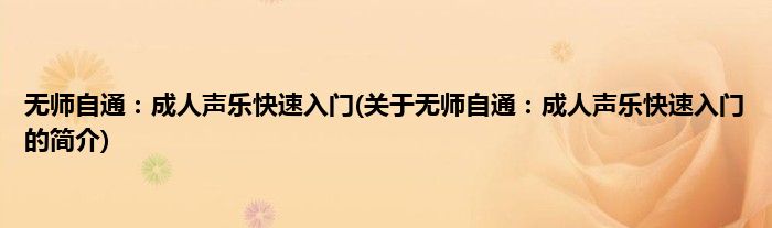 本文关于无师自通:成人声乐快速入门的简介就讲解完毕,希望对大家有所帮助。