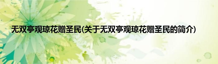 大家好,无双亭观琼花赠圣民,关于无双亭观琼花赠圣民的简介很多人还不知道,现在让我们一起来看看吧!