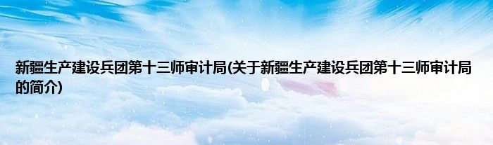 新疆生产建设兵团第十三师审计局(关于新疆生产建设兵团第十三师审计局的简介)