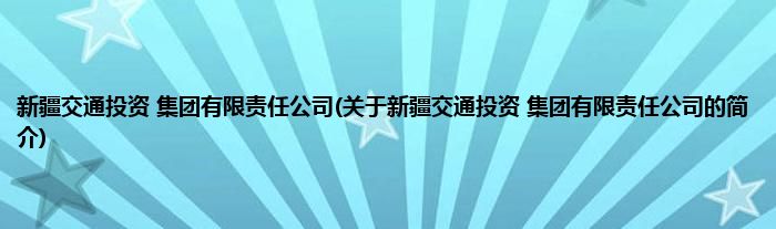 大家好,新疆交通投资 集团有限责任公司,关于新疆交通投资 集团有限责任公司的简介很多人还不知道,现在让我们一起来看看吧!