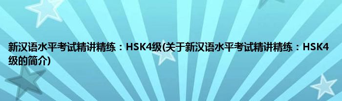 大家好,新汉语水平考试精讲精练:HSK4级,关于新汉语水平考试精讲精练:HSK4级的简介很多人还不知道,现在让我们一起来看看吧!