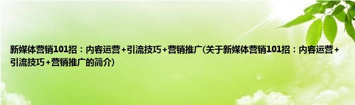 本文关于新媒体营销101招:内容运营+引流技巧+营销推广的简介就讲解完毕,希望对大家有所帮助。