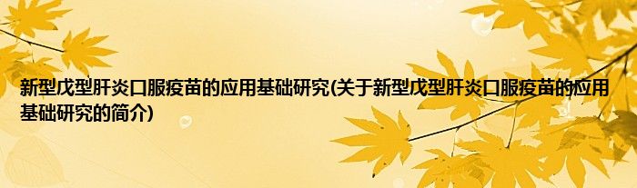 本文关于新型戊型肝炎口服疫苗的应用基础研究的简介就讲解完毕,希望对大家有所帮助。
