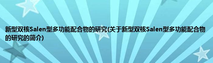 大家好,新型双核Salen型多功能配合物的研究,关于新型双核Salen型多功能配合物的研究的简介很多人还不知道,现在让我们一起来看看吧!